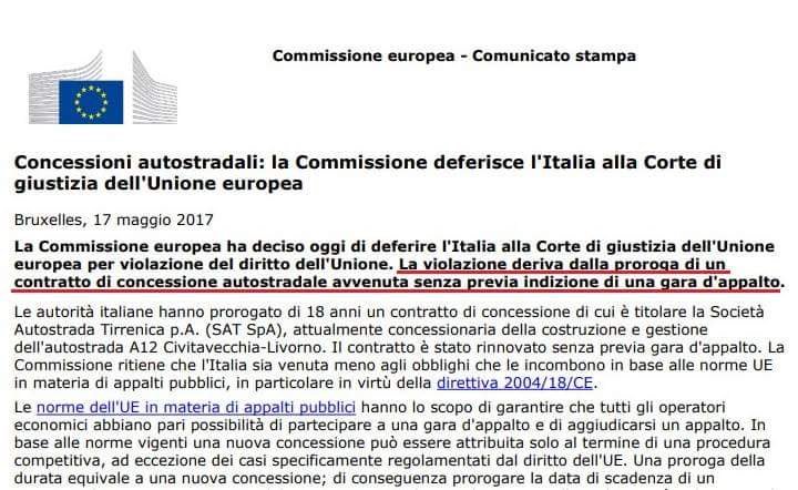 Concessioni Autostrade - i piddini urlano come i gremlins per cercare qualcuno da incolpare, ma nel 2017 il governo PD fu perfino deferito alla Corte di giustizia dalla Commissione UE.
